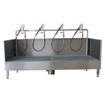 The boot washing station with splash guard is a professional shoe and boot washing system for intensive use in agriculture, butcheries, fire stations and police