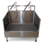 The boot washer with hand washing brushes offers the advantage over the Multi-Grate boot washing station that only one water