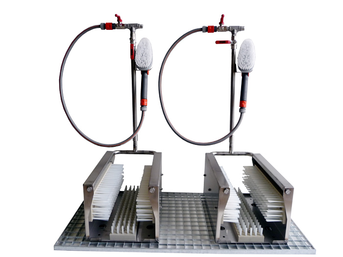 The Boot washer grid-installation is a small, compact and robust boot washer, which can be easily attached to an existing grating. This boot washer can therefore be installed flexibly in an existing washroom. Due to its light weight and compact dimensions, the boot cleaner is very mobile and can be quickly installed at a new location. It impresses first and foremost with its uncomplicated handling and great flexibility.