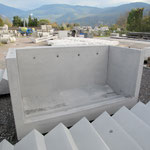 Insulated water pipes and connections are on site. Sanitary parts must be installed by a specialist on site. However, for the greatest possible frost protection, the rear wall offers extra space for winter-proof installation by the plumber, such as piping, connections and water pipes. For the versions with 2 and 4 places, it is possible to install the water drain on the left or right side. In the standard version, this is fitted centrally. The versions with 6 and 8 cleaning places have two drains, which are cast in on both sides. The drains are usually equipped with shaft liners (NW 100).