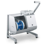 The used liquid is collected under the brush and automatically drained off together with the grated dirt. The sole cleaning machine is completely made of fine polished stainless steel (1.4031)