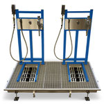 grids. A grab rail ensures a secure stand. The automatic water control, water stop valve and water-carrying hand brush make it easy to operate. The system has a stainless steel tray,