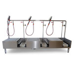 For shoe cleaning, the work shoe is positioned on the higher, removable stainless steel grating. The hard bristles of the water-bearing hand brush can be used to thoroughly clean