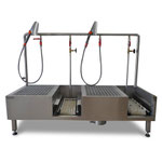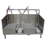 As an option the work shoe washer can be equipped with two side splashboards and one rear splashboard. This prevents the area around the wash station, as well as sensitive equipment and people in